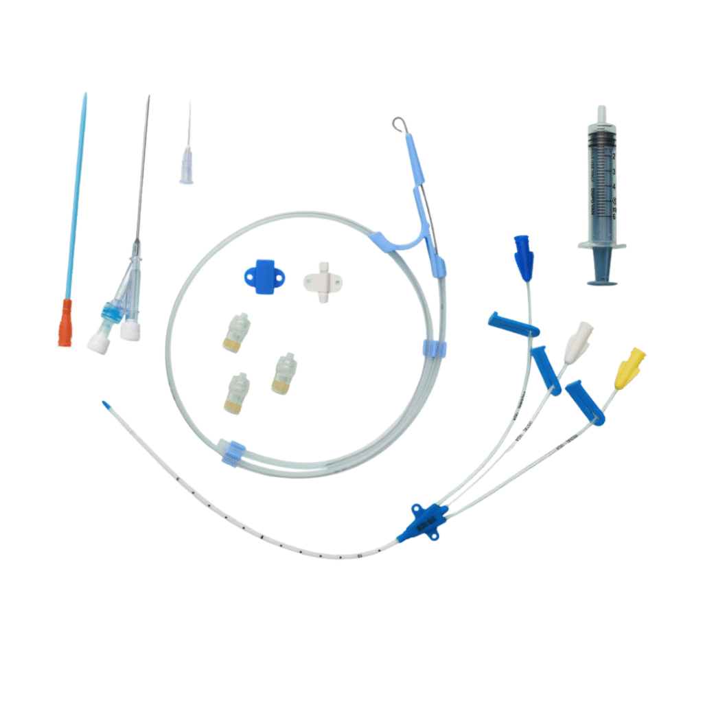 A hemodialysis double lumen curved catheter is a medical device used for temporary access to the bloodstream for dialysis. Its double-lumen design has two separate channels for blood to flow in and out, while the curved tip is designed to minimize trauma to the blood vessel during insertion.