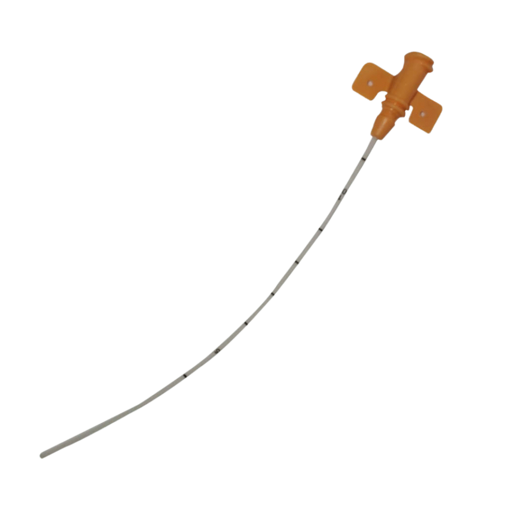 Carefully & geometrically designed soft and conical tip of catheter ensures safe and easy insertion offering good tissue and blood tolerance thus reducing the risk of blood clotting & intra vascular pain. Exceptionally biocompatible PU material which by property is stiff & non-kinking at room temperature but softens at body temperature thus ensures correct placement of catheter.